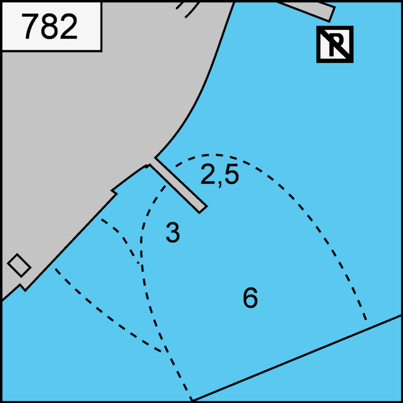 Kiinnittyminen: Ankkuri, poiju. Syvyys 1-4 m.